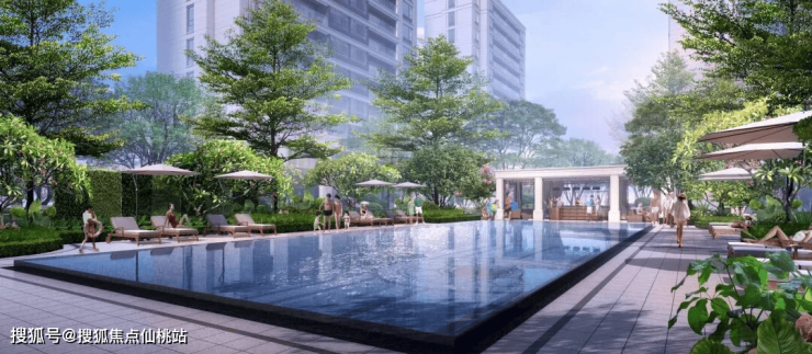 中心泳池为整个园区景观的核心,在主轴中依次布置共享大堂,中心泳池,睦邻花园等功能区,其他景观区围绕主轴展开,庄重大气,更体现静谧及亲切感。