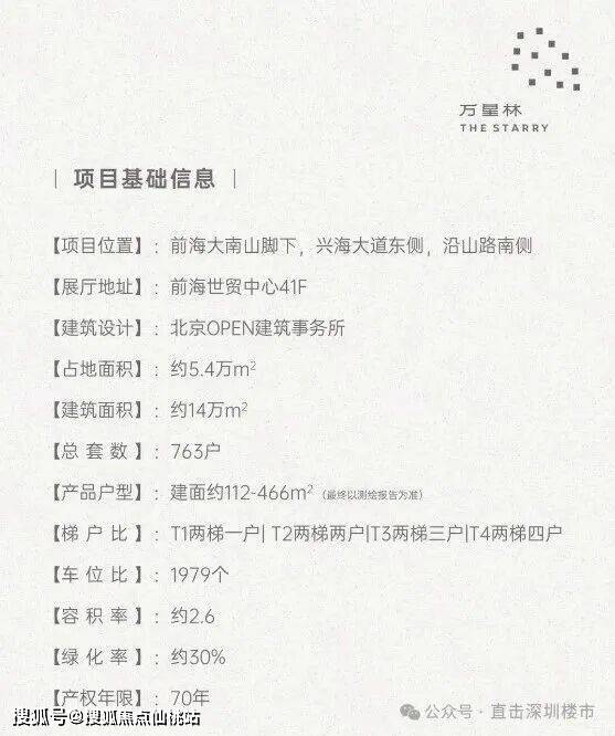 户型方面,因深圳“70/90”政策退出,项目由原955户调整为763户,主力户型建面约112-466㎡,定位改善型产品,涵盖两梯一户至两梯四户,超豪华梯户比。