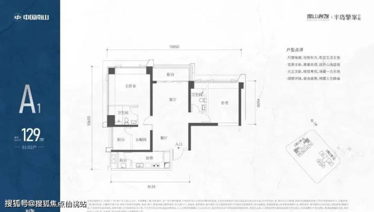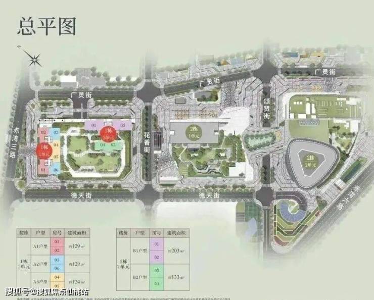 A1有两条腿,分别1-1栋01/02,主朝向是西北向,双龙抱珠格局。