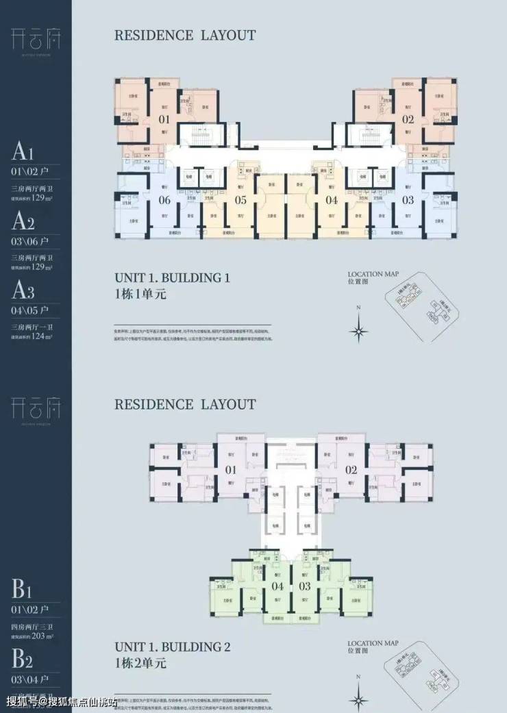 🔘1栋一单元A1、A2户型:面积约为129㎡