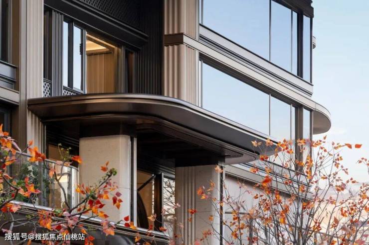 设计亮点:采用竖向竹纹铝板与鎏金腰线构建公建化立面,搭配270°环幕转角窗,引入城市景观;部分户型实现LDKB一体化设计,提升空间通透感。