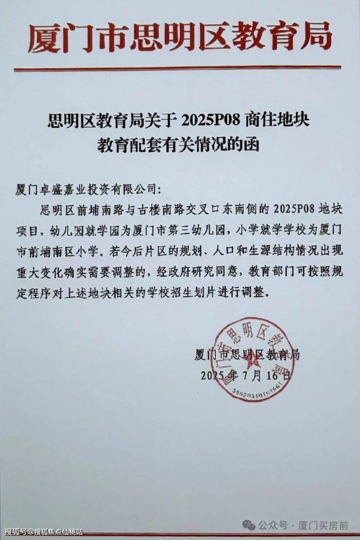 1. 教育:前埔南区小学(直线约350m,步行可达,思明优质校);幼儿园有市一幼前埔分园;初中属第11片区多校划片(一中/双十/外国语思明分校+大同中学);
