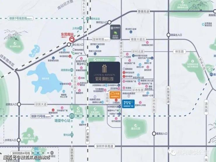 项目位居塘厦老城中心,拥有老城醇熟配套,约2公里范围内有沃尔玛、天虹、星河COCO Garden等大型商超,距离塘厦最大型商场天虹购物中心约700米,步行即可到达;驱车20分钟内可到悦港汇、金地仟百汇、花园街、万科生活广场等成熟中心商圈,享受城央醇味生活。