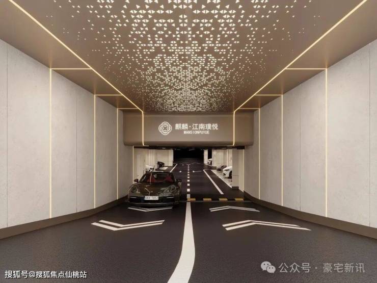 单元大堂与地下光厅均以豪宅标准打造:璀璨星空顶、分色环氧自流平、陶瓷大板砖,搭配香槟金金属饰面与氛围灯带,多重材质与光影交织,让每一次出入,皆具归家的尊崇仪式。