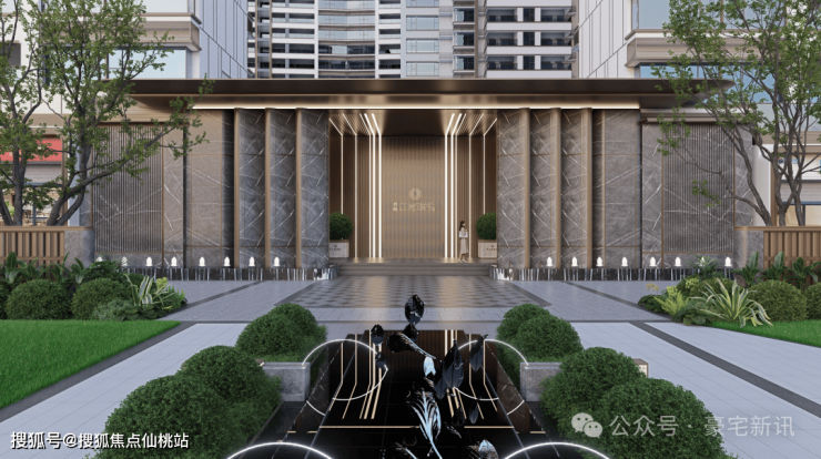 时光广场以酒店式入口营造归家仪式感,将度假般的松弛与精致悄然融入日常。迎宾水景以“鲤跃龙门”雕塑点睛,既寓意事业腾达、生活丰盈,亦让每一次归途,都成为心之所安的温柔启程。
