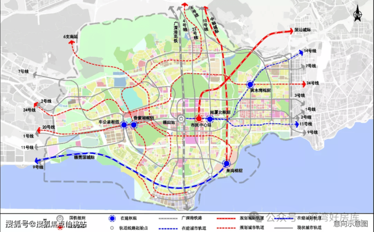 →中心枢纽:综合枢纽中心——福田站