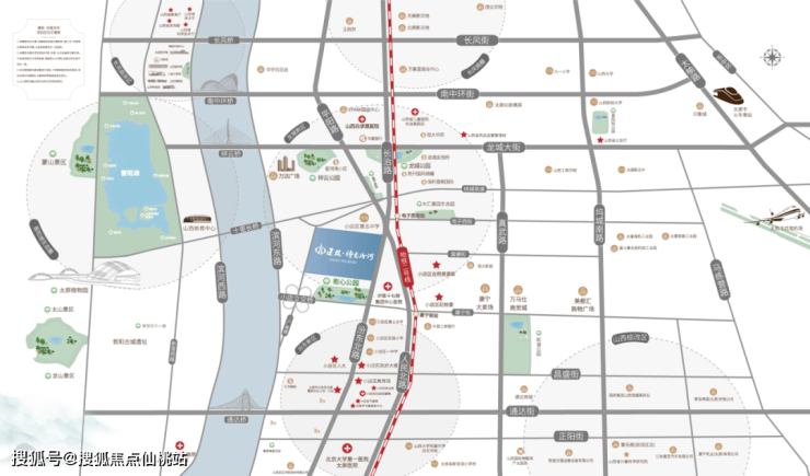 项目距地铁2号线电子西街站直线距离仅约480米,周边“三横”:南中环、龙城大街、通达街,“六纵”:滨河东路、汾东路、人民路、真武路、坞城路、太榆路等多条主干道交织,形成“三横六纵一轨道”立体交通网络,日常通行畅达无忧。商圈簇拥,近享龙城万达、北美N1、国金中心、北美新天地、天美新天地、王府井、茂业等商业群。生活配套齐全,开启一站式都会生活体验。