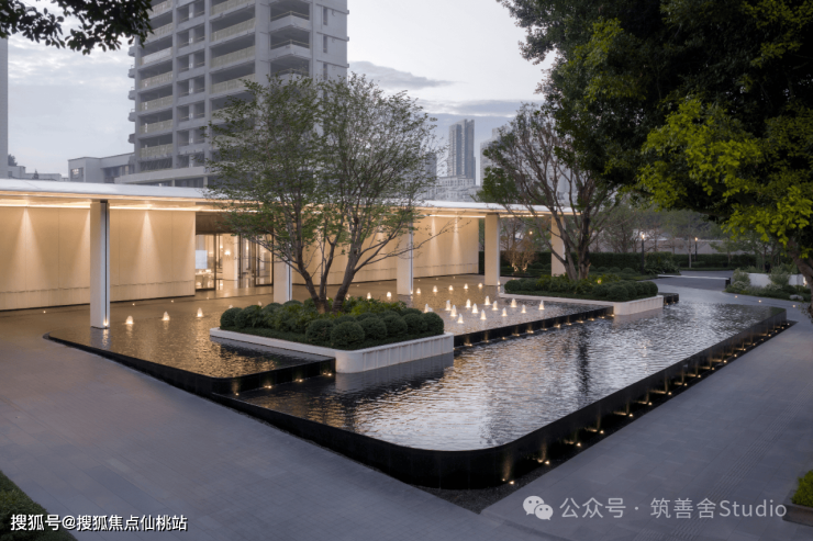 园林景观以自然入画,步入沉浸式花园秘境。以“情绪化”布局景观,巧妙拉通室内外场域,呈现自然生长、森林水岸共生的雅致庭院。从秩序对称到自然放松,树木自由散落,悠然生长于浮岛之上,撑起满园绿意。姿态优雅的乔木,枝干苍劲有力,沉淀时光韵味。近百种植物交错生长,形成会呼吸的植物群落,自然密度林木如翡翠屏障,为居者绘制绿色精神场域。轻盈廊架悬浮水上,伴水归家,将内外繁华与静谧无缝衔接,尽显轻盈优雅。