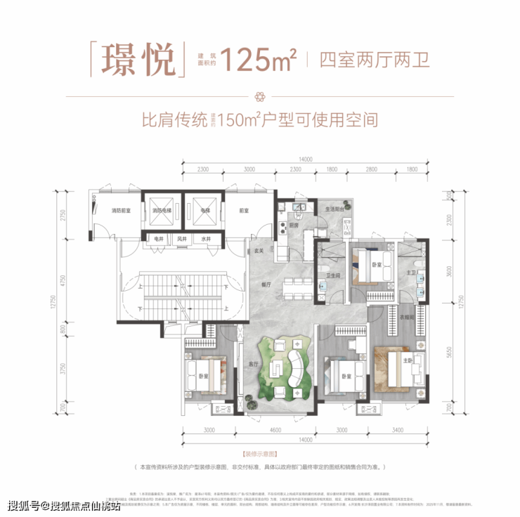 建面约125㎡:足以媲美旧规150㎡的“空间魔术”。
