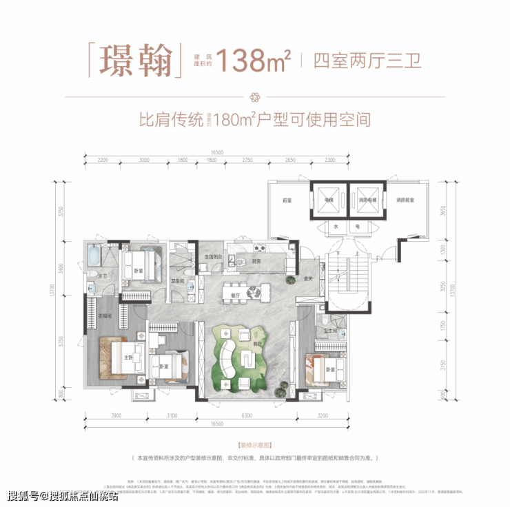 建面约138㎡:足以媲美匹敌180㎡的“尺度颠覆”。