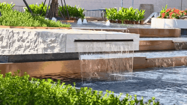 从主入口的「水月芳屿」静雅水景会客厅启程,这里以近300㎡水景为核心,构筑一方约800㎡的“园中之园”。设计灵感汲取自岭南名园“余荫山房”,入口两侧的红果冬青如躬身迎宾,归家仪式感自此而生。
