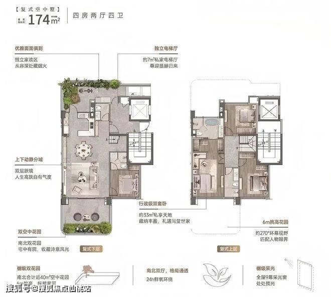 国贸樾云墅项目完成第四代住宅的“墅质化”探索,实现了垂直空间的“墅级体验”转化,传统别墅的“地面庭院”与“分层私密”特征,通过“双空中花园”与“复式结构”在高层住宅中实现,突破了高层户型“扁平化”的局限,是对高品质住宅的居住体验提升的有效尝试。