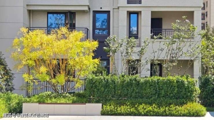 二期洋房的出入户大门采用石材搭配金属包边标识,石材立面庄重大气,搭配红枫迎宾,仪式感拉满。
