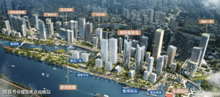 鱼珠岛尖连片规划,将打造18公顷的世界级内湾公园与活力艺术水岸。鱼珠湾商务区是广州“两江东进”的桥头堡,与琶洲、金融城共同支撑着广州科技创新发展的“黄金三角”