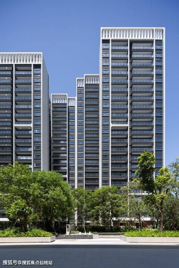 住宅立面设计通过简洁大气的框体语言、大虚大实的形体关系、优雅弧角的母题符号打造专属本案的定制立面形象,灰为主,白为辅、极具构成感的色系划分,形成了多层次,虚实鲜明的公建化住宅立面形象。