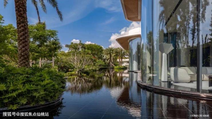 在美学园林中,项目从云、水、林三大自然意向出发,通过全球约200种热带植物的多层次配比,还原繁华城市中的热带雨林,让“如云在天、如水在地、如人在林”的感受成为生活日常。