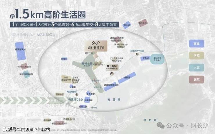 约1.5km范围,梅溪湖CBD、国际文化艺术中心、览秀城、金茂大厦……国际都会心上,万象繁华生活。