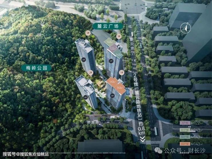 距2号线麓云路地铁站约800米,可与6号线换乘