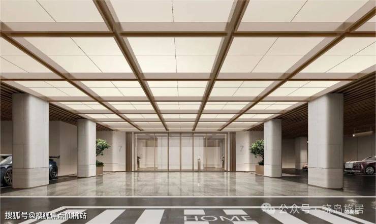 •一进:酒店式归家 | 近 70 米长弧形落客门廊,围合仪式感入口前院