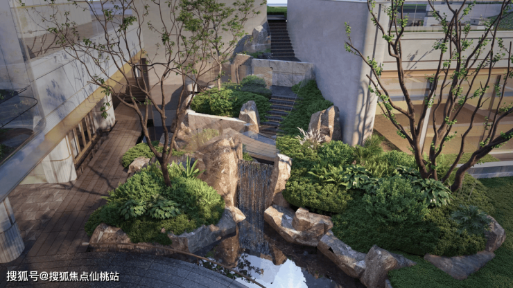 保利·宸央打造城东罕有的约1500㎡森谷林涧立体式花园。全冠移植4棵进口百年黑松,古罗马御用红洞石铺就水景,150余种植物打造24节气花园,四季景观轮替。归家即入景,将自然美学与生活完美融合。