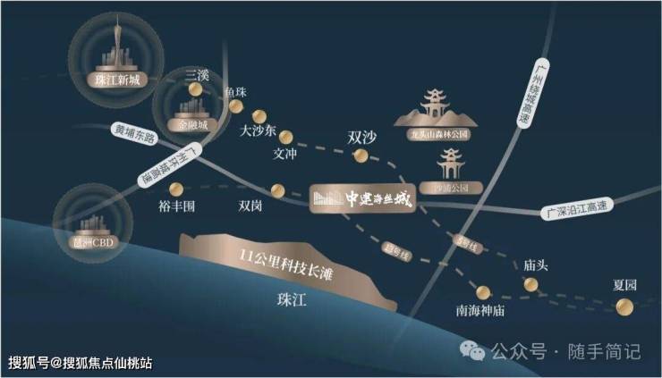 中建海丝城是广州市“十四五”规划中老黄埔双沙旧村改造的核心工程,被定位为“广深科技创新走廊的产城融合示范区”。由中建八局和知识城集团联袂打造,占地面积214,900㎡,建筑面积823,200㎡,总规划7个组团,容积率4.59,绿化率35%,车位配比约1:1.12。