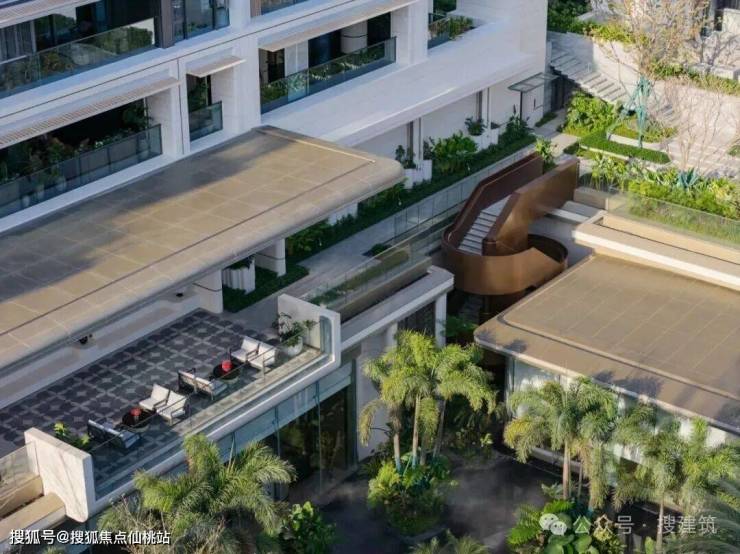 庭院的建筑设计上则遵循颜值美学准则,以全开放式设计消弭内外空间壁垒——通透立面如流动取景框,将热带原生植被的层叠绿意、馥郁花香引入院内,从踏步入庭的第一瞬,超五星级酒店式的沉浸式度假氛围便如潮水般包裹周身,松弛感与仪式感在通透界面里自然交融。搜建筑