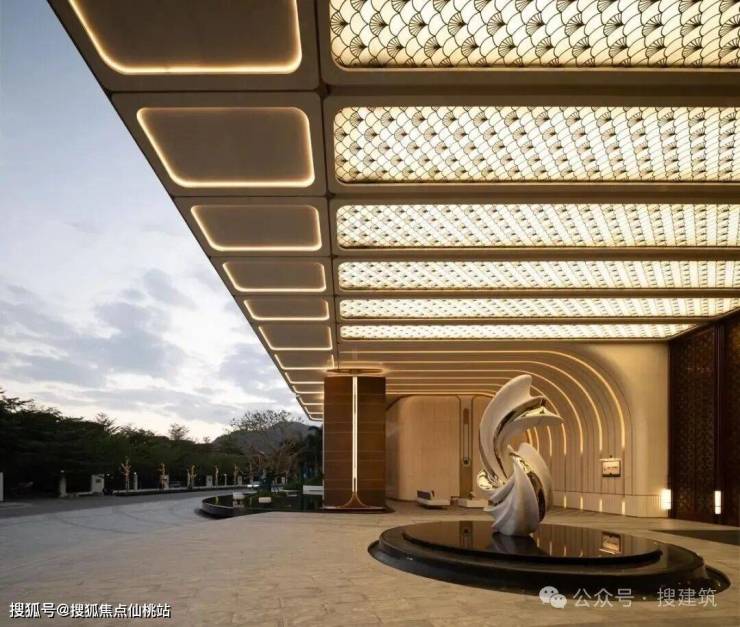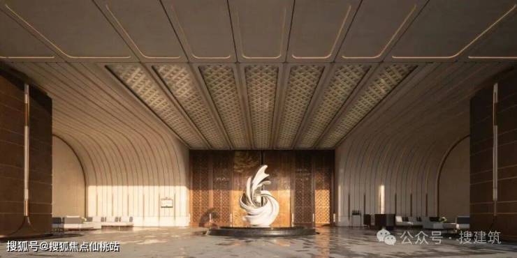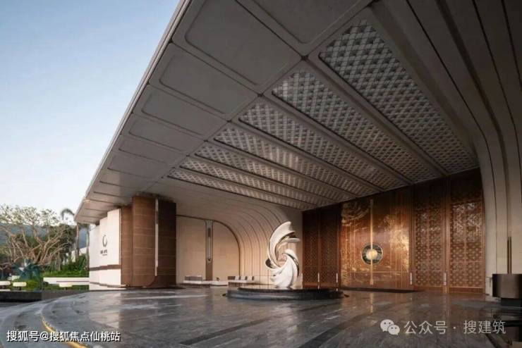 主入口以严整中轴为礼序核心,以对称格局铺陈仪式感与递进序列感,尽显尊贵归家气场。搜建筑