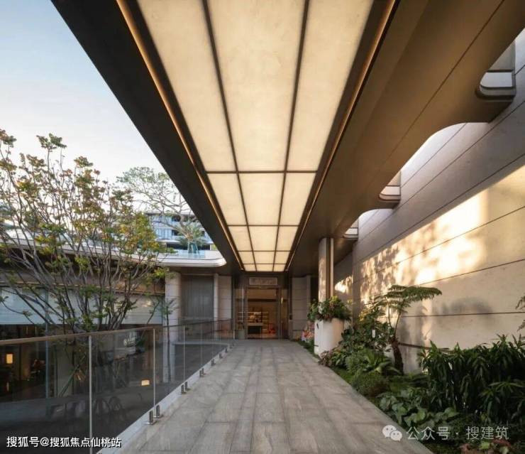 步出主入口,即刻踏入半开敞廊厅——以「空间收束」为叙事起点,复刻“初极狭,才通人”的入境仪式感:两侧高奢莱姆石墙垣以沉敛肌理勾勒归家礼序的厚重底色,附生蕨类与滨海花境的柔蔓漫过檐口,将雨林的松弛绿意揉进石材质感的冷峻中。搜建筑