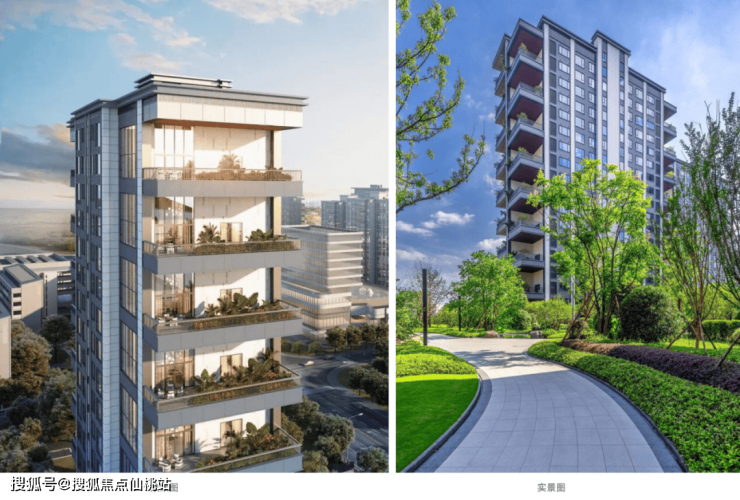 外立面来看,实景中的建筑立面,材质拼接的工艺缝线横平竖直,金属线条的收口精准利落,实际质感远远超过效果图四代住宅阳台对比样板间而言,精致度更显。且无论是门框、绿植还是地面标志均1:1复原。