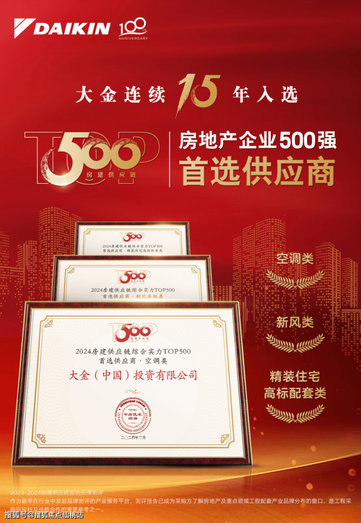 从品牌价值、综合实力和服务质量,大金在业界内有口皆碑,得到多个国际奖项认可,如“2022年德国iF设计奖”、“2024全球品牌价值500强”等权威奖项;更连续15年入选“中国房地产企业500强首选供应商·空调类”榜单。