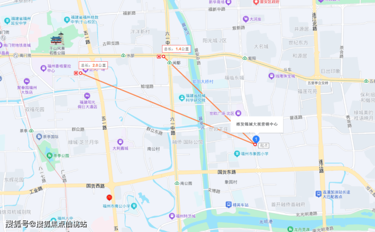 当我站在项目地块,打开手机地图测量时,确实被震撼了:直线距离五一广场仅约2公里,距离古田路那条掌握着福建金融命脉的“银行一条街”,只有1.4公里。