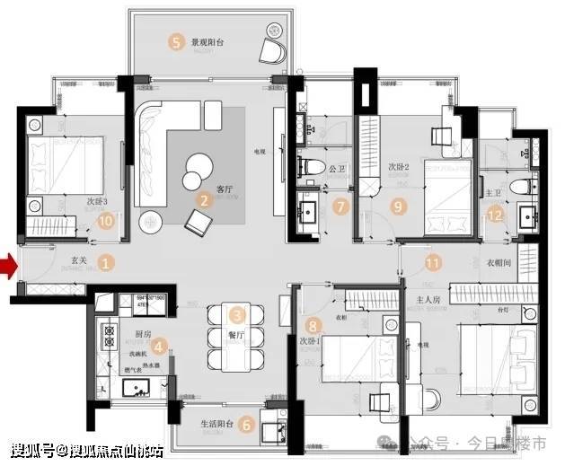 项目共有住宅6栋,其中1-4栋及6栋为塔楼设计,5栋为板楼设计,均为24层高,预可提供500套左右新房。