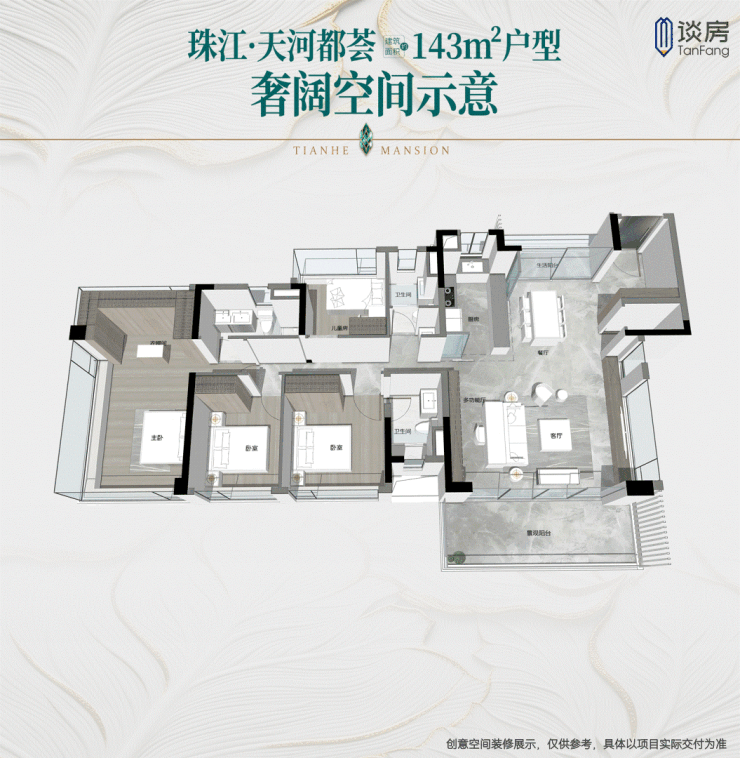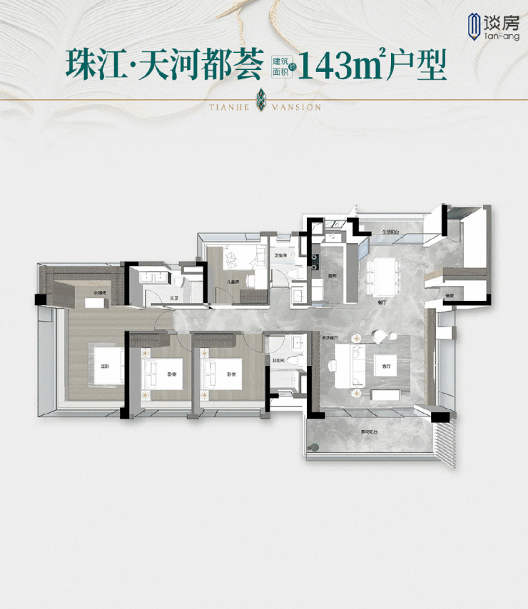 建面约143㎡五空间3卫,流通性TOP级面积段