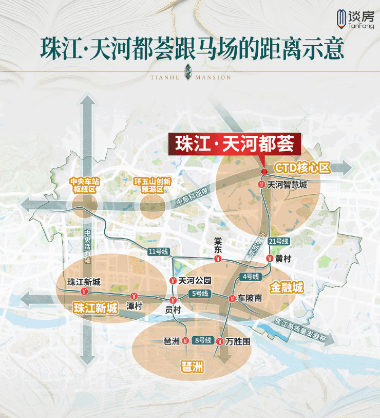 位于天河CTD之上的天河都荟,距双CBD正中心的马场地块仅5站快线,直接接住这波蝴蝶效应。