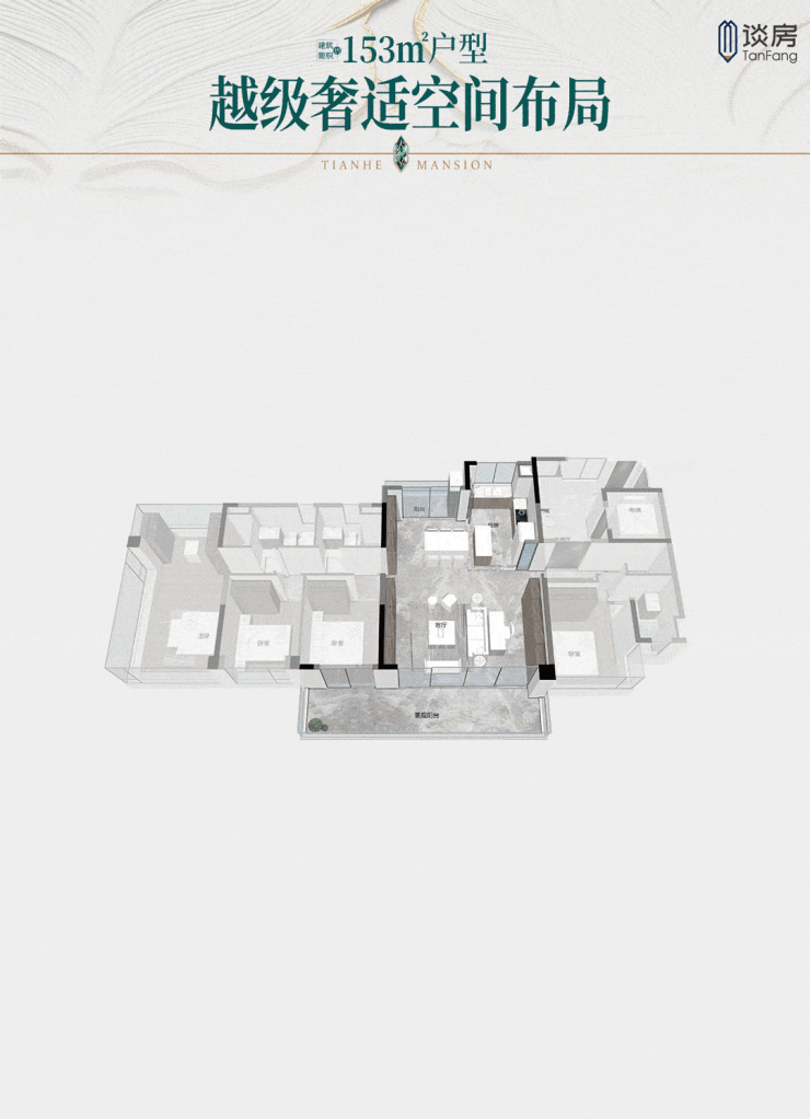 除了以上户型,还有天河罕见的板式大平层——建面约153㎡五空间。