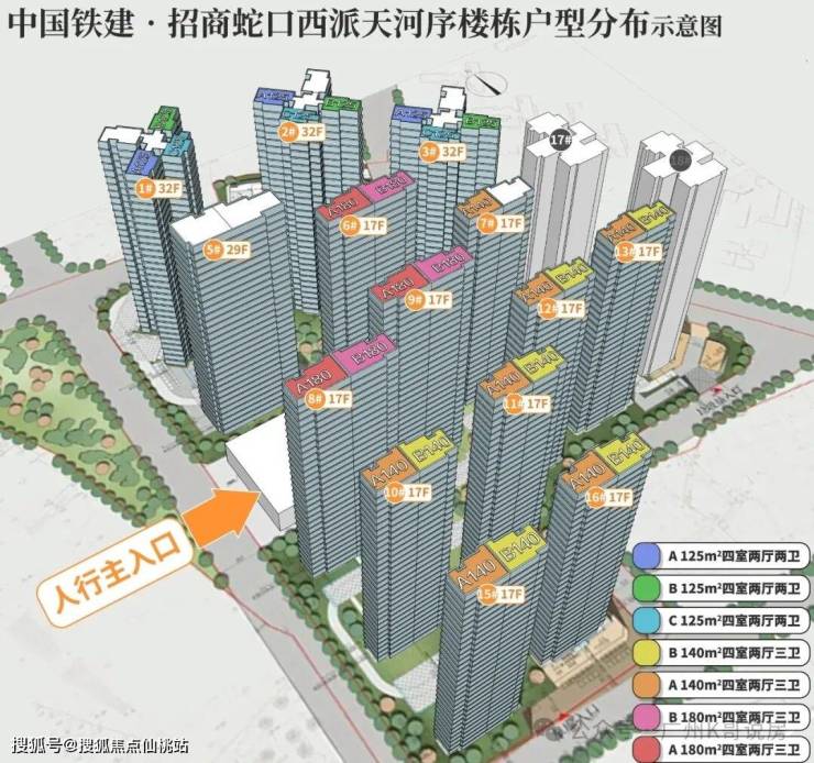 1-3号楼,120-143平,2梯4户,塔楼,层高3米,总层高32层。