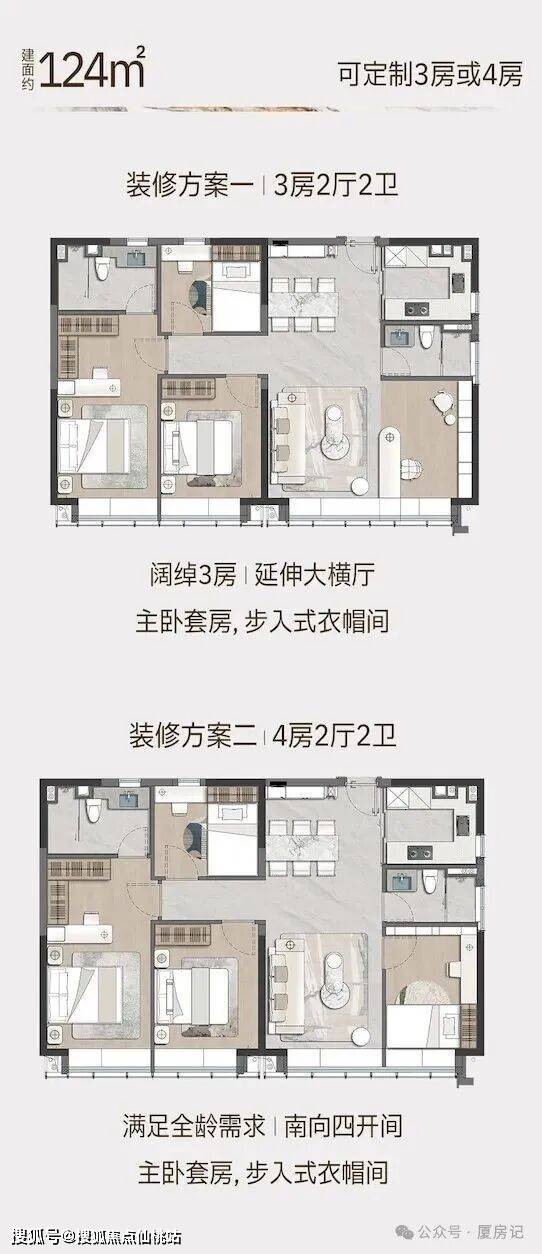 •五缘公馆主打63㎡、120㎡、124㎡户型,120㎡户型每层2套朝向东北,主卧可达30多平,但两间洗手间为暗卫;124㎡户型每层4套朝向西南,支持三房、四房灵活改造,采用大通厅无柱设计;不过户型存在无南北通透、部分房间仅设小通风窗、窗户为不可拆除飘窗等问题,且无燃气供应;