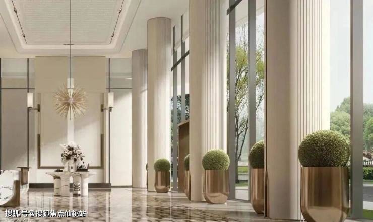 尊崇高定大堂,精研艺术与生活交融之美,雕琢金属与石材材质的自然奢华,营造艺术感的归家体验,遇鉴居者精奢高雅的审美。