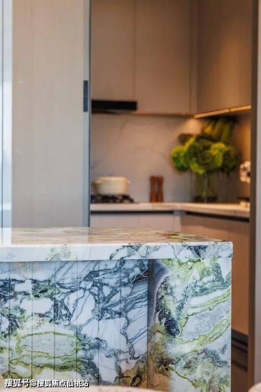 岛台采用的是冷翡翠大理石,清灵如诗,莹洁似玉,每一块都是独一无二的艺术品。