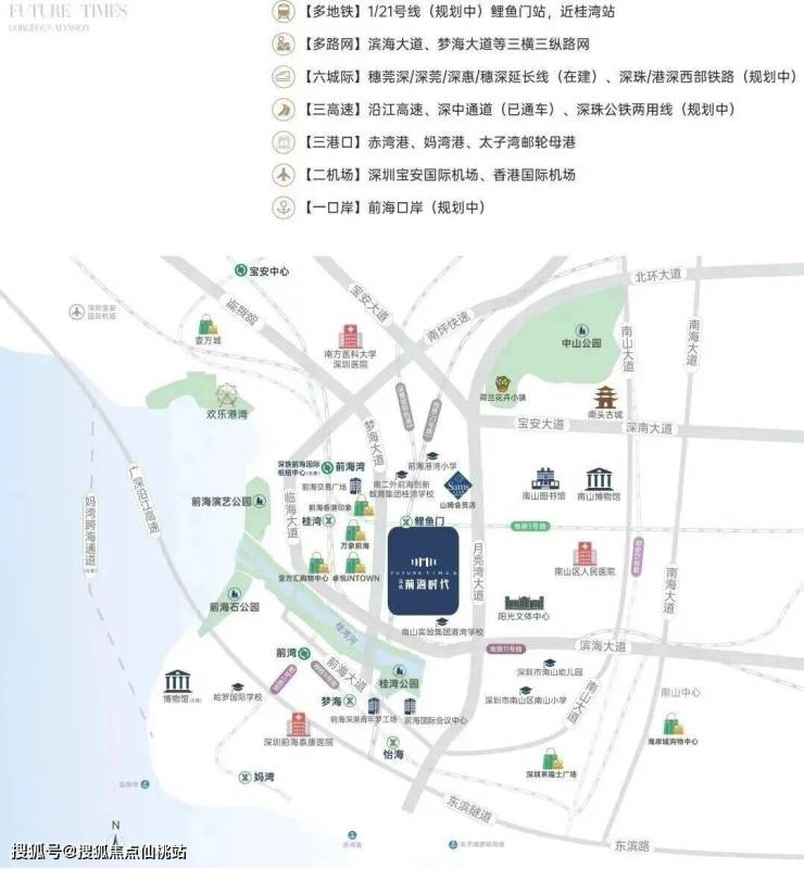坐拥海陆空轨多维交通,通达湾区城际及全球主要城市引领大湾区国际化生活方式。