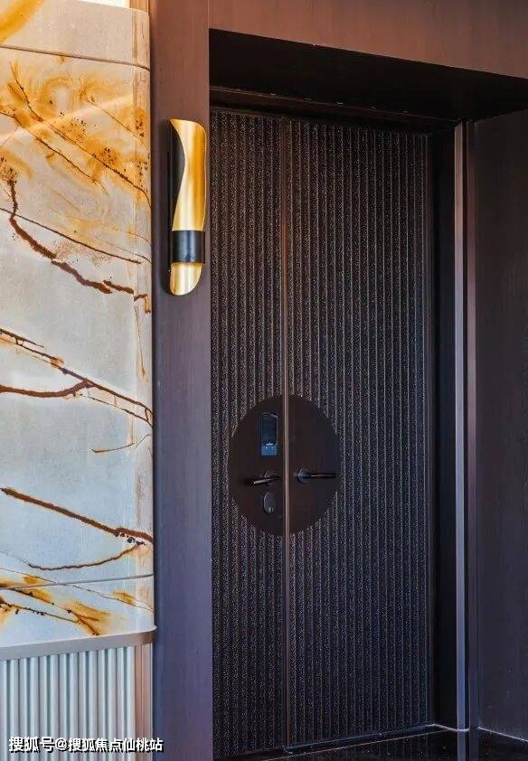 从踏入楼栋开始,户型的仪式感与私密性便已拉满。以顶配户型285㎡户型为例,入户门选用“门老爷”定制款,透着扎实的安全感。