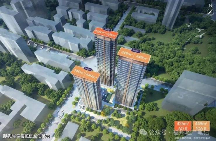 项目位于仓山区石边路东侧、石边支路南侧,占地约13.04亩,总建筑面积约3.22万㎡,容积率2.8,建筑限高100米。社区规划极为纯粹,仅3栋高层住宅:1#、2#楼为31层,3#楼为24层,总计166套房源,车位比1:1.01,绿化率30%,整体居住密度较低。建筑采用公建化玻璃幕墙外立面,搭配5.1米高架空层与酒店式落客区,现代感与归家仪式感兼具。