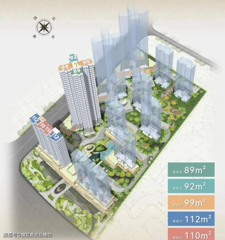 产品方面做的是低密度板楼和塔楼,建面约89-98㎡全南向私密塔楼、建面约109-122㎡小高层纯南专梯专户板楼,新规进阶产品,高使用率。