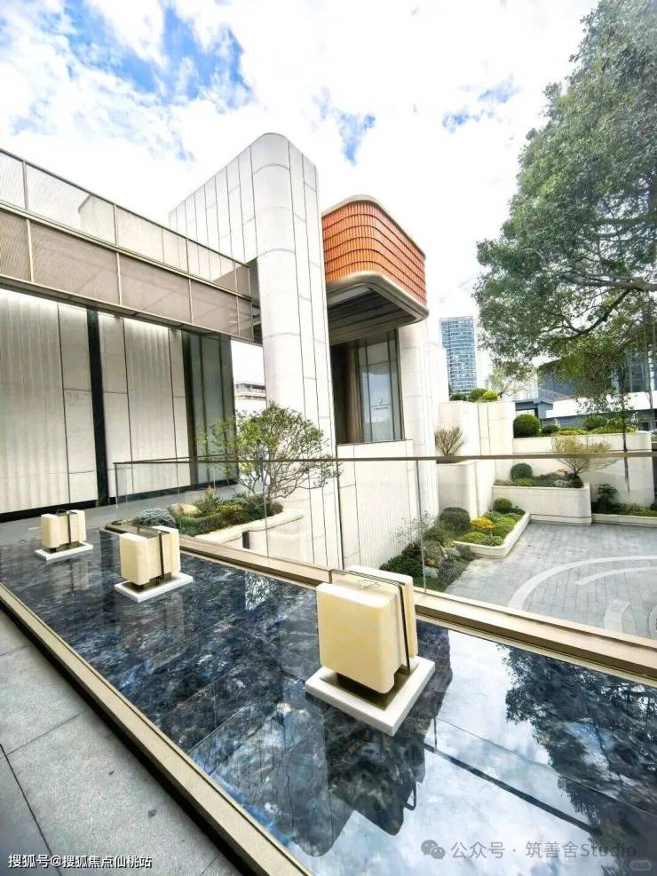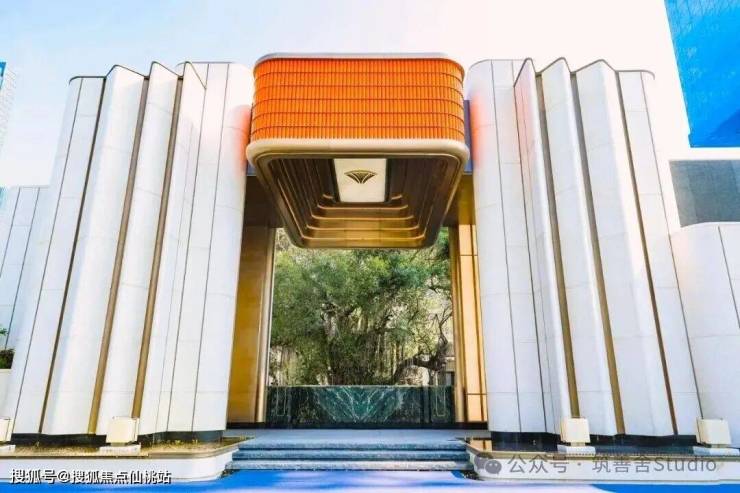 中海环东雲起的大门,高达10米以上,选用顶级月光米黄石材打造,地面铺装同样为定制设计,并配备专属IP化灯具。白天尽显恢弘气势,夜晚亮灯后宛如城市小地标——在环东区域独树一帜,放眼全厦门亦属罕见。这不仅在于其“大”,更在于“精工细作”。大门区域铺设约2200㎡的月光米黄大理石,每块石材对缝精准无隙,就连拐角处也采用弧形工艺处理,彰显极致匠心。