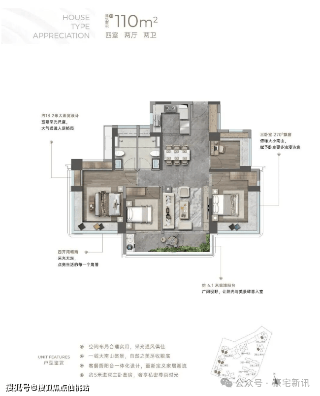 113 平,2 - 1 - 02 户型,阳台西北向看学校,卧室东南向看花园大南山折后价:848 万 - 907 万,有高中低楼层可选