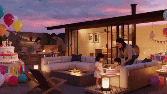 露台更是属于阖家共享的“温情剧场”,盛放亲密无间的相伴时光。将露台打造成一个家庭游乐园,任孩子肆意撒欢,或放置一架天文望远镜,晚上与孩子一起探索斗转星移的奥秘;又或是三代围坐,支起投影幕布,共享一场家庭电影会,天伦相聚,笑语盈庭,每一刻便都成了生活珍贵诗篇。