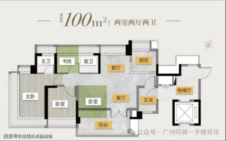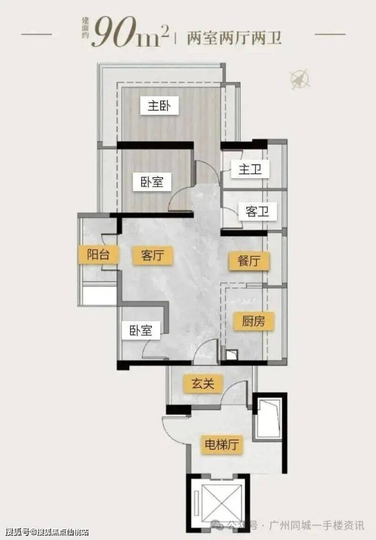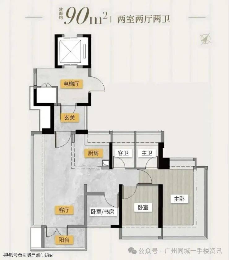 塔楼01东边位:90㎡竖厅三房,东南向