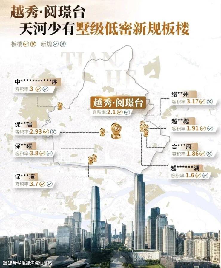 越秀阅璟台项目容积率仅约2.1,比肩世界大观板块的低密墅区项目。交通高配,快速接驳CBD