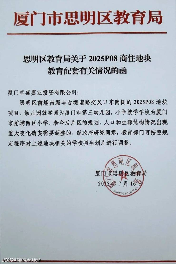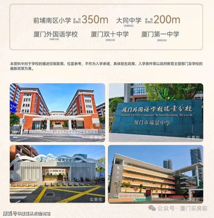 1. 教育:前埔南区小学(直线约350m,步行可达,思明优质校);幼儿园有市一幼前埔分园;初中属第11片区多校划片(一中/双十/外国语思明分校+大同中学);