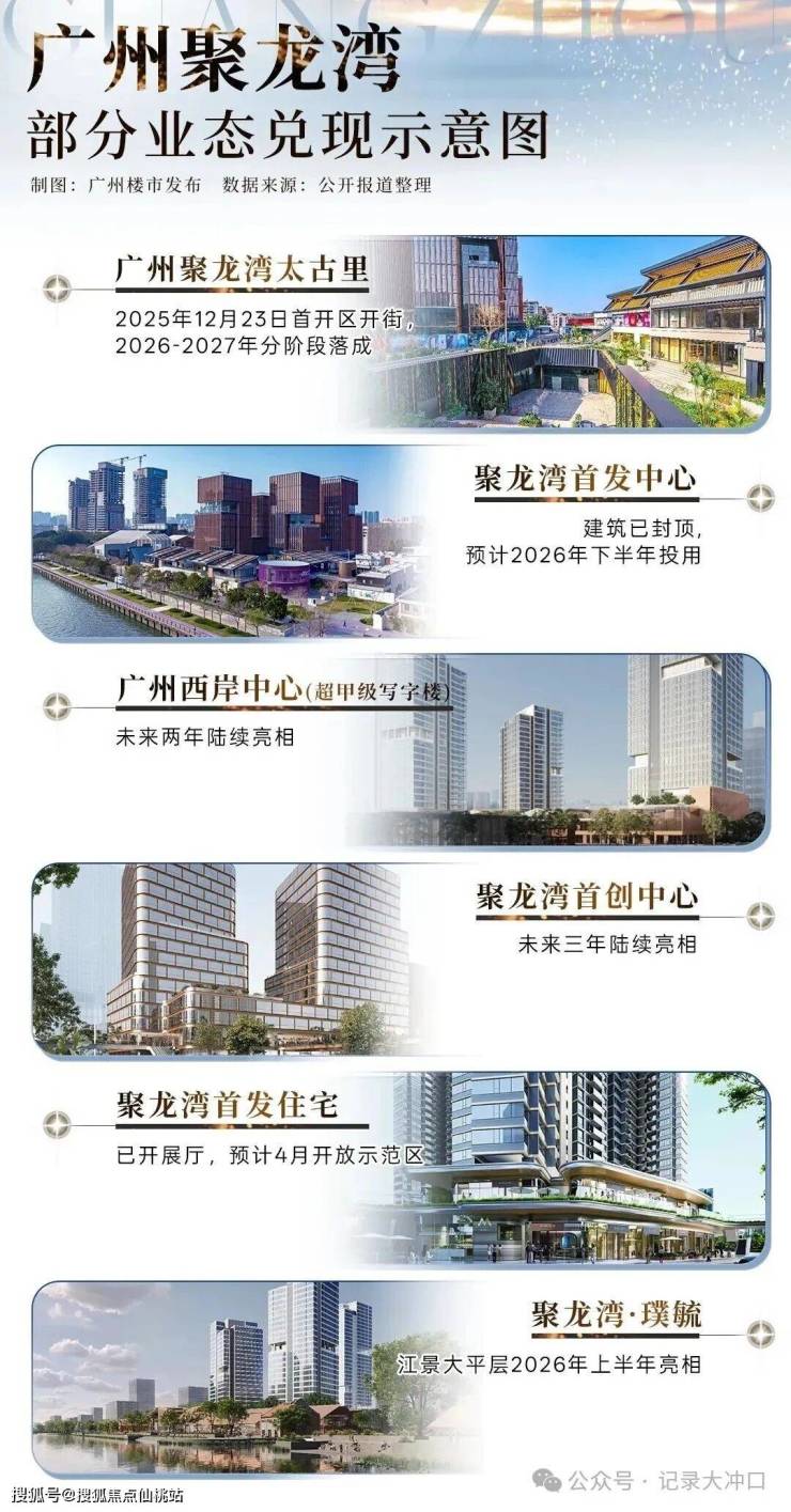 白鹅潭作为广州"西联"战略的核心支点,正处于价值爆发前夜。根据《广州市白鹅潭地区发展规划(2022-2035年)》,白鹅潭将被打造为辐射湾区西部的产业集聚区,形成"两区五组团"的产业发展布局。聚龙湾片区作为白鹅潭商务区核心区域,总占地约2.21平方公里,总投资超千亿元,预计将成为广州西部CBD的核心组成部分。
